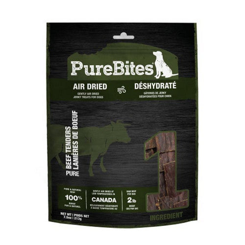Product Description Go ahead, look at our ingredients. Made with only 1 high-quality ingredient: 100% pure beef. Proudly sourced and made in Canada. Made fresh & pure using a delicate air drying process at low temperatures to help preserve fresh RAW whole food. With 2.0lb of RAW beef per 7.5oz bag, our air dried beef jerky treats are packed with more RAW protein and nutrients. Dogs love the taste of PureBites! 100% natural, pure, high in protein, only 52 calories per beef tender, and nothing added like artificial colors, fillers, sweeteners, or glycerin. Ideal for dogs with health issues, have allergies, or are on a restricted diet. Feed as a healthy treat, or as a training aid for your dog. In an effort to do our part, PureBites gently air dried jerky treats are packaged in recyclable bags that we can recycle today for a better tomorrow. All PureBites treats, food, mixers, and toppers are always backed by our 100% satisfaction guarantee.Proudly sourced and made in CanadaMade fresh & pure using a delicate air drying process at low temperatures to help preserve fresh RAW whole food100% natural, pure, high in protein, and nothing added like artificial colors, fillers, sweeteners, or glycerinIdeal for dogs with health issues, have allergies, or are on a restricted dietFeed as a healthy treat, or as a training aid for your dogMade with only 1 high-quality ingredient: 100% pure beefOnly 52 calories per beef tender Product Benefits Ingredients Suggestions Battery Required:No. Batteries Included: No. Feeding Instructions:Refer to instructions on product packaging. Special Note Warnings DisclaimerPeta2z.com offers nationally branded products that are produced according to manufacturing standards set by regulators at everyday low prices. Do not use unproven, unbranded products, which can pose serious risks to your health.