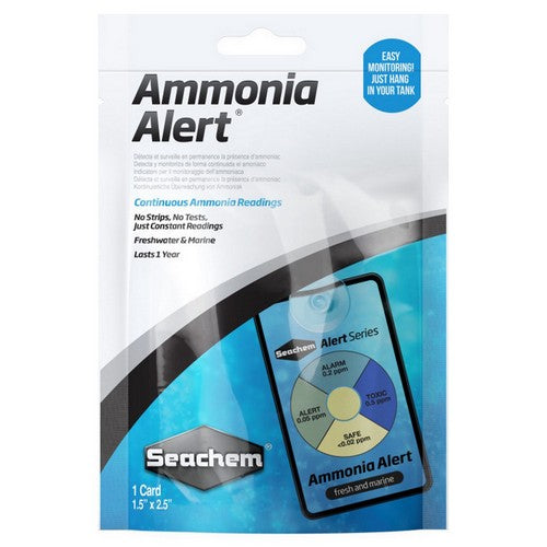 Product Description Ammonia Alert is an innovative color device for continuously detecting and monitoring toxic free ammonia. A sensor changes reversibly from yellow to green to blue, relative to the ammonia concentration. No test kits, chemicals, or procedures are needed. The device detects less than 0.05 mg/L (ppm) free ammonia and alerts you to the killer before any sign of stress. It lasts over a year. This product is not recommended for use at acid pH. Marine or freshwater use. Product Benefits Ingredients Suggestions Special Note Warnings DisclaimerPeta2z.com offers nationally branded products that are produced according to manufacturing standards set by regulators at everyday low prices. Do not use unproven, unbranded products, which can pose serious risks to your health.