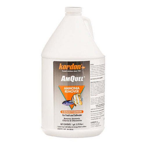 Product Description Kordon amquel detoxifies all forms of ammonia, dechlorinates by detoxifying both chlorine and chloramine, and detoxifies toxic pheromones. Will not harm biological filters, safe for reefs. For fresh or saltwater 1 ounce bottle treats 60 gallons. Product Benefits 1. One Step Liquid Chlorine, Chloramine And Ammonia Remover. 2. Nontoxic To Fishes, Aquatic Invertebrates And Other Aquatic Life. 3. Fast Acting Within Five Minutes, Simple To Use. 4. Effective In Removing Toxic Pheromones. 5. Does Not Affect The Waters Ph. Ingredients Suggestions As a general rule, when using tap water in which chlorine and chloramines are present, but not nitrites, nitrates or other organics then it is safe to use the less expensive amquel. If there is the possibility of nitrites, nitrates and other organics being involved, then amquel plus is recommended. Special Note Warnings Amquel is not a medication and is not intended to be a substitute for any chemotherapeutic agent. Keep out of reach of children. Non toxic to humans, pets and aquatic life. For ornamental pond and aquarium fish only. Not for human, medical or fish food use. DisclaimerPeta2z.com offers nationally branded products that are produced according to manufacturing standards set by regulators at everyday low prices. Do not use unproven, unbranded products, which can pose serious risks to your health.