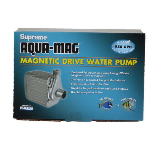 Product Description The supreme aqua mag magnetic drive utility pump is a magnetically driven, submersible pump. This supreme aqua mag pump features a unique energy efficient design uses only one moving parta ceramic magnetic impeller. 10 foot long three pronged power cord make installation in larger ponds a breeze. Product Benefits Energy Efficient Design Just 1 Moving Part . Completely Submersible, Use In Or Out Of The Water. Pump Salt Or Fresh Water. 3 Year Limited Warranty. Ingredients Suggestions Special Note Warnings DisclaimerPeta2z.com offers nationally branded products that are produced according to manufacturing standards set by regulators at everyday low prices. Do not use unproven, unbranded products, which can pose serious risks to your health.