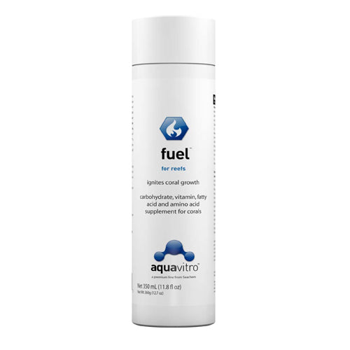 Product Description fuel is a comprehensive carbohydrate, vitamin, amino acid, polyunsaturated fatty acid, and trace element supplement developed to address nutritional requirements commonly associated with corals. fuel contains ascorbic acid in a base of chlorella, which contains a rich assortment of amino acids and vitamins. The health benefits of chlorella are widely known and while spirulina, a similar algae, has been regularly used in the industry, aquavitro is the first to utilize the vastly superior chlorella. fuel is formulated to provide nutrients available from natural tropical reef waters. Product Benefits Ingredients Suggestions Use Instructions:Shake well before using. Use 5 mL for every 80 L (20 US gallons) twice a week or as required to maintain coral growth. Special Note Warnings DisclaimerPeta2z.com offers nationally branded products that are produced according to manufacturing standards set by regulators at everyday low prices. Do not use unproven, unbranded products, which can pose serious risks to your health.