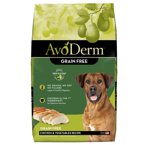 Product Description Appeal to your dog's natural canine sense. Let them indulge in AvoDerm Grain Free Chicken & Vegetables Recipe. This premier dry dog food incorporates high-quality proteins and vitamins to ensure your dog is receiving the optimal nutrition he needs to remain energetic, happy and healthy. Crafted for all life stages, including adult dogs and puppies, every bite of dry kibble supplies the crucial nutrients, minerals and antioxidants to your dog's diet while satisfying their boundless appetite. Your dog deserves only the best and AvoDerm Natural dog food strives to achieve that. Our Grain Free Chicken & Vegetables Recipe begins with high-quality chicken to provide the essential protein your dog craves. We compliment these flavors with omega-rich avocados. The right nutrients in the right proportions are indispensable to keeping your dog's skin healthy. Sometimes shortages or excesses of specific nutrients can lead to thin, rough coats. Avocado and avocado oil can help support the skin and coat from the inside out for the protection your pet needs. This dry dog food is pressure cooked to ensure your dog receives the optimum nutrition from the high-quality ingredients. This ensures that every grain free bite is highly digestible to avoid any upset stomachs. You can feel confident when serving AvoDerm Natural products. Our recipes never include meat by-products, artificial flavors or artificial colors. Deliver all the great taste your dogs and puppies crave with all the nutrition they need. Avoderm Natural Grain Free Chicken & Vegetables Formula For All Life Stages Dry Dog Food. Promotes Healthy Skin & Coat: Premium Natural Dry Dog Food Made With Omega-Rich Avocados To Promote Healthy Skin, Coat, Immune System And Overall Health. Grain Free Natural Dog Food: Wheat Free, Corn Free And Soy Free. No By-Products Meals, No Artificial Flavors, No Artificial Colors. Crafted For All Life Stages: Pure Mixture Of Natural Ingredients Provides A Crunchy Savory Taste That Dogs Of All Ages Will Love. Contains Vital Vitamins & Minerals: Supports Healthy Immune Systems For A Strong Happy Dog. Product Benefits Ingredients Suggestions Special Note Warnings DisclaimerPeta2z.com offers nationally branded products that are produced according to manufacturing standards set by regulators at everyday low prices. Do not use unproven, unbranded products, which can pose serious risks to your health.