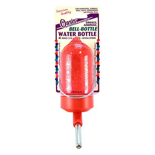 Product Description The oasis bell bottle is a rigid water bottle with a round domed top that duplicates hte shape of a bell jar formwhichit getsitsname. Bell bottles fit well on cages available in todays market and come in a variety of gem like colors to match plastic habitat pet homes and please everyone. Bell bottles are made using breakage resistant rigid crystal styrene plastic and hold water well. Product Benefits Breakage Resistant Rigid Crystal. Stainless Steel Balls. Ingredients Suggestions Special Note Warnings DisclaimerPeta2z.com offers nationally branded products that are produced according to manufacturing standards set by regulators at everyday low prices. Do not use unproven, unbranded products, which can pose serious risks to your health.