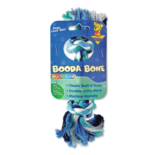 Product Description Booda 2 Knot Rope Bones can be used for interactive play or as solo dog chews. These natural cotton bones are a fun and easy way to floss your dog's gums and help prevent dental disease. Feature machine washable, tightly twisted cotton for long-lasting durability. Available in two-knot or three-knot designs and in a variety of sizes. Made from natural cotton. Dimensions: 1 x 3.5 x 8. Product Benefits Ingredients Suggestions Special Note Warnings DisclaimerPeta2z.com offers nationally branded products that are produced according to manufacturing standards set by regulators at everyday low prices. Do not use unproven, unbranded products, which can pose serious risks to your health.