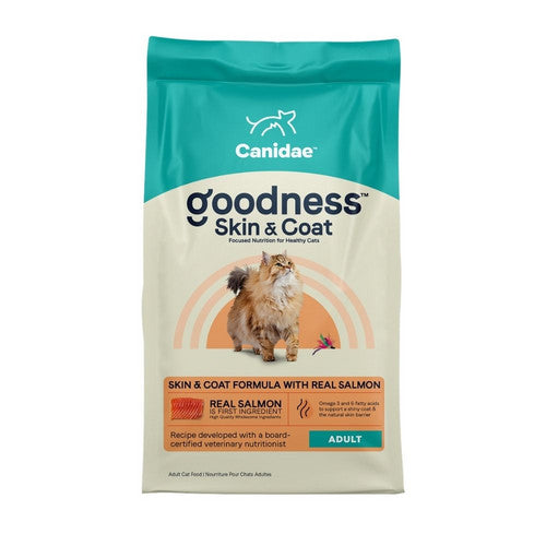 Product Description Canidae goodness dry cat food is a health-first line formulated specifically to support healthy adult cats. Developed in partnership with a board-certified veterinary nutritionist, each bite is packed full of ingredients scientifically proven to provide focused nutrition for your cat. Each formula has real poultry or fish as the first ingredient and is composed of high-quality, wholesome ingredients. Made in the USA with domestic and globally sourced ingredients. Health-first line formulated specifically to support healthy adult cats. Ingredients scientifically proven to provide focused nutrition for your cat. Real poultry or fish is the first ingredient. Composed of high-quality, wholesome ingredients. Made in the USA with domestic and globally sourced ingredients. Product Benefits Ingredients Suggestions Special Note Warnings DisclaimerPeta2z.com offers nationally branded products that are produced according to manufacturing standards set by regulators at everyday low prices. Do not use unproven, unbranded products, which can pose serious risks to your health.