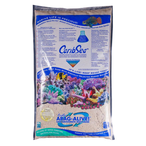 Product Description Arag-Alive! - You can now bring the world's most exotic reefs into your home with CaribSea's Arag-Alive! substrates. Eight environmentally accurate ecoscapes, developed from CaribSea's cooperation with public aquariums and zoological parks where authenticity is a must, Arag-Alive! makes any aquarium uniquely yours. Arag-Alive! makes it easy to set up an aquarium. It's ready to work, clears quickly, and contains millions of live bacteria to cycle super fast and create a natural biological balance. Arag-Alive! suppresses the dreaded new tank syndrome, compresses the ammonia cycle, and discourages nuisance algae. In fact, independent labs prove Arag-Alive! cycles days faster than other brands of live sand. That's what makes Arag-Alive! the choice of new aquarists and maintenance companies where speed of set up, beauty, and reliability are demanded. Product Benefits Ingredients Suggestions Care and Cleaning Instructions:No Rinsing Special Note Warnings DisclaimerPeta2z.com offers nationally branded products that are produced according to manufacturing standards set by regulators at everyday low prices. Do not use unproven, unbranded products, which can pose serious risks to your health.