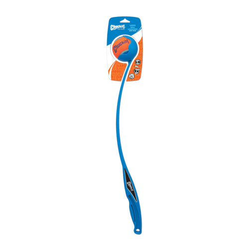 Product Description A terrific way to exercise your dog without wearing yourself out is with the Chuckit! Sport Launcher! Throw balls 2 to 3 times farther with this Ball Launcher. Hands-free pickup - no more slobbery balls. Ergonomic rubber handle for the ultimate comfort and control. Made from durable lightweight flexible plastic. Comes in a variety of throwing ranges and ball sizes. Use with standard tennis balls or Chuckit! Compatible balls only. Each Launcher comes with a standard Chuckit! Tennis Ball. Ships in assorted colors. Made in the USA. Product Benefits Ingredients Suggestions Special Note Warnings DisclaimerPeta2z.com offers nationally branded products that are produced according to manufacturing standards set by regulators at everyday low prices. Do not use unproven, unbranded products, which can pose serious risks to your health.