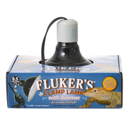 Product Description Flukers Clamp Lamp is ideal fixture for basking reptiles, with a ceramic socket thats rated for incandescent bulbs and a convenient dimmer switch. The spring-loaded swivel head may be positioned to radiate in any direction, and the secure clamp instantly attaches to the rim of any terrarium. Ceramic socket for incandescent bulbs Attaches to the rim of any terrarium Convenient dimmer switch 75 Watt Clamp Lamp is 5.5" Wide 150 Watt Clamp Lamp is 8.5" Wide 120 Volt clamp lamp with dimmer 6' long power cord This UL/CUL-approved lamp features a metal reflector for enhanced output, with a 6 foot power cord for your convenience.Directions: Set lamp at one end of terrarium (lets pet retreat to cooler side if desired). Provide structure allowing the pet to climb up toward the lamp. DO NOT put food or water under the lamp! The dimming option does NOT work for compact fluorescent or mercury vapor bulbs. To use these bulbs the dimmer switch must be turned completely on. Important: Be sure to read all information regarding safe lamp placement and operation before use. Product Benefits Ingredients Suggestions Special Note Warnings DisclaimerPeta2z.com offers nationally branded products that are produced according to manufacturing standards set by regulators at everyday low prices. Do not use unproven, unbranded products, which can pose serious risks to your health.