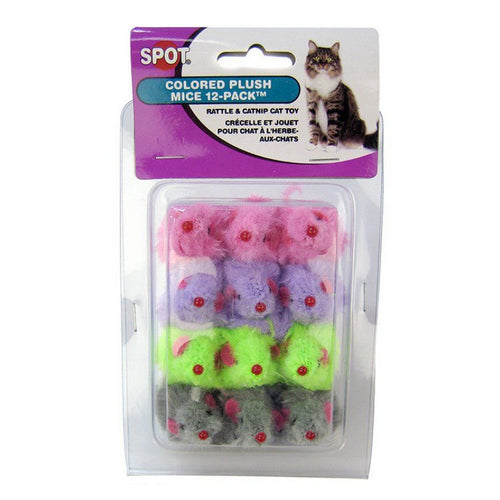 Spot, Colored Fur Mice Cat Toys, 12 Pack