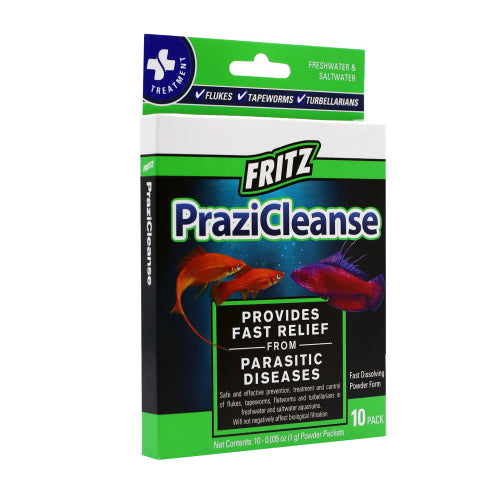 Product Description PraziCleanse is a safe and effective anti-parasitic treatment to control unwanted parasites. Effective against skin and gill flukes, tapeworms, flatworms, and turbellarians. This treatment is suitable for fresh and saltwater aquariums, and will not discolor the water. It does not harm plants, other invertebrates or uninfected fish. Do not use in systems with tube worms or feather dusters. Use for Tapeworms, Flatworms, Fish Lice, or Gill & Skin Flukes. Does Not Discolor Water. Easy to Measure Packet Dosing System. Bulk Jars Available for Larger Systems. Safe for Fresh and Saltwater Systems. Product Benefits Ingredients Suggestions Battery Required:No Batteries Included?:No Use Instructions:Refer to product packaging Special Note Warnings DisclaimerPeta2z.com offers nationally branded products that are produced according to manufacturing standards set by regulators at everyday low prices. Do not use unproven, unbranded products, which can pose serious risks to your health.
