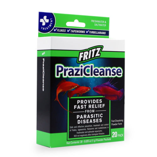 Product Description PraziCleanse is a safe and effective anti-parasitic treatment to control unwanted parasites. Effective against skin and gill flukes, tapeworms, flatworms, and turbellarians. This treatment is suitable for fresh and saltwater aquariums, and will not discolor the water. It does not harm plants, other invertebrates or uninfected fish. Do not use in systems with tube worms or feather dusters. Use for Tapeworms, Flatworms, Fish Lice, or Gill & Skin Flukes. Does Not Discolor Water. Easy to Measure Packet Dosing System. Bulk Jars Available for Larger Systems. Safe for Fresh and Saltwater Systems. Product Benefits Ingredients Suggestions Battery Required:No Batteries Included?:No Use Instructions:Refer to product packaging Special Note Warnings DisclaimerPeta2z.com offers nationally branded products that are produced according to manufacturing standards set by regulators at everyday low prices. Do not use unproven, unbranded products, which can pose serious risks to your health.