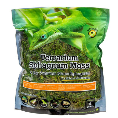Product Description Galapagos Terrarium Sphagnum Moss, Green Sphagnum Moss is one of the most versatile and important beddings ever! Use green sphagnum as a snake bedding, a humidifier, an incubation medium, or a substrate for carnivorous or live plants. This soft and leafy green moss is naturally fungicidal to fight mites and odors. Product Benefits Ingredients Suggestions Special Note Warnings DisclaimerPeta2z.com offers nationally branded products that are produced according to manufacturing standards set by regulators at everyday low prices. Do not use unproven, unbranded products, which can pose serious risks to your health.