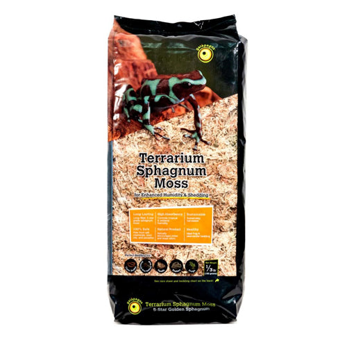 Product Description Galapagos Terrarium Sphagnum Moss, 5-Star Golden Sphagnum is soft and fluffy golden moss that holds 20-times its dry weight in moisture. Its inherent fungicidal properties also help fight odors and fungal growth. Product Benefits Ingredients Suggestions Special Note Warnings DisclaimerPeta2z.com offers nationally branded products that are produced according to manufacturing standards set by regulators at everyday low prices. Do not use unproven, unbranded products, which can pose serious risks to your health.