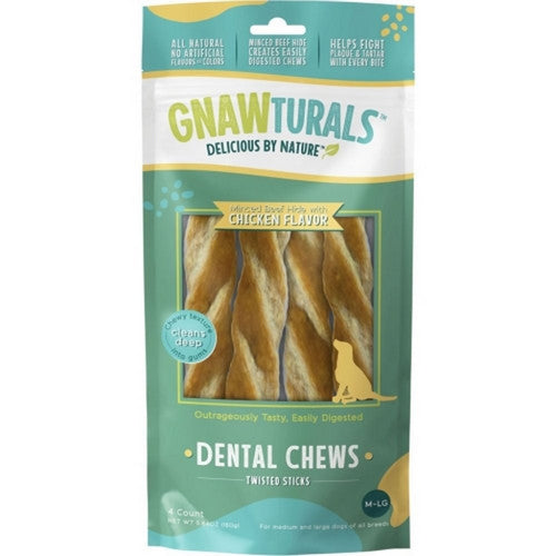Gnawturals, Gnawturals Dental Chews Twisted Stick, Large/4 Count,CHICKEN