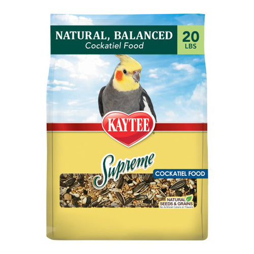 Product Description Kaytee Supreme Cockatiel food is a wholesome, high-quality mix that contains all of the natural protein, fiber, oils and nutrients of whole grains. Fortified to ensure a balance blend, Supreme utilizes natural seeds, grains and pellets to provide your bird with a simple yet healthy diet. Kaytee Supreme offers high quality ingredients pet birds love and the nutrition they require Natural seeds and grains. No artificial colors or flavors. High quality ingredients. Naturally preserved for ideal freshness. Product Benefits Ingredients Suggestions Special Note Warnings DisclaimerPeta2z.com offers nationally branded products that are produced according to manufacturing standards set by regulators at everyday low prices. Do not use unproven, unbranded products, which can pose serious risks to your health.