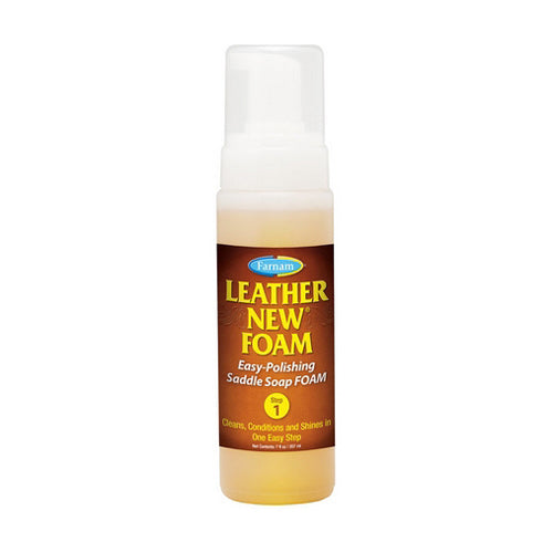 Product Description The same great original Leather New formula but in a foam applicator, so there's less mess, Won't drip or run. Cleans, conditions and polishes in one easy step. Softens and preserves leather, leaving a long-lasting, high-gloss shine. Won't dull or stain leather or rub off onto clothes. Easy to apply to hard-to-reach places. Also use on wet leather to prevent stiffening and on stiff leather to soften and prevent cracking.  Product Benefits Foam Applicator Means Less Mess. Contains No Ozone Depleting Fluorocarbons. Ingredients Suggestions Directions: Remove dust and dirt from leather. Apply directly and rub into leather with cloth with enough nap to reach down into stitches and carving. Rub thoroughly until foam disappears. Afterwards, use Leather New Deep Conditioner to restore softness and pliability. 7 oz size, handy for traveling. Special Note Warnings DisclaimerPeta2z.com offers nationally branded products that are produced according to manufacturing standards set by regulators at everyday low prices. Do not use unproven, unbranded products, which can pose serious risks to your health.