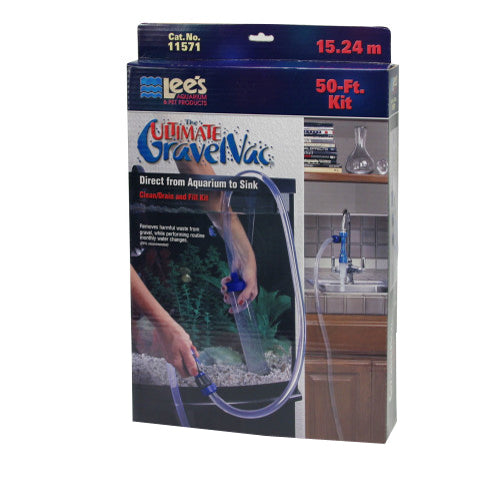 Product Description No more need for heavy, messy,unwieldly buckets.Ultimate GravelVac attaches directly to most faucets and allows water to drain directly into sink.Use faucet adapter if necessary. It also allows the aquarium to be filled with ease.Water changes refresh your aquarium with precious nutrients and remove excess debris.Includes Fish-Saver cleaning assembly.Also offered in a 50ft kit. Product Benefits Ingredients Suggestions Special Note Warnings DisclaimerPeta2z.com offers nationally branded products that are produced according to manufacturing standards set by regulators at everyday low prices. Do not use unproven, unbranded products, which can pose serious risks to your health.