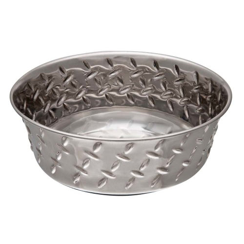 Loving Pets, Loving Pets Diamond Plate Bowls with Non Skid Bottom Dog Dish Bowl, Silver, 1 Each/1 pt