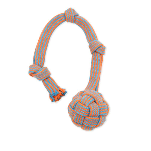 Mammoth Pet Products, Mammoth Pet Products EXTRA Flossy Webbing Ball w/Fling Handle Dog Toy, Orange/Blue, 1 Each/SM, 16 in