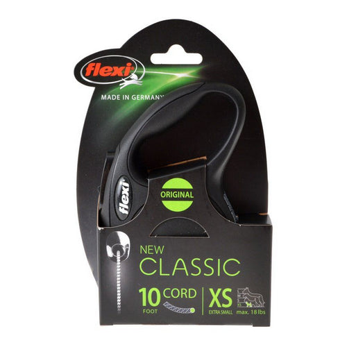 Product Description Flexi New Classic Cord Leashes offer superior control and security with a comfortable, convenient handle. These retractable leads feature instant braking, high-strength cords, durable chromed snap hooks, and ergonomic handles to provide the ultimate walking experience for you and your dog. Short-stop braking system keeps pets secure High strength cord with durable bite belt and reflective safety elements Durable chromed snap hook attaches to all collars Flexi New Classic leashes are customizable to meet your needs. The extendable design makes it easy to attach an optional LED lighting system for nighttime visibility and safety, and the Flexi Multi Box, a special compartment for storing your furry friends waste pick-up bags or favorite treats (not available on X-Small size). Made in Germany. Note: The Flexi New Classic is an updated and improved version of the Flexi Classic 3 retractable leash.Flexi Leash Size Guide:X-Small - Dogs up to 18 lbsSmall - Dogs 18-26 lbsMedium - Dogs 26-44 lbs Product Benefits Ingredients Suggestions Special Note Warnings DisclaimerPeta2z.com offers nationally branded products that are produced according to manufacturing standards set by regulators at everyday low prices. Do not use unproven, unbranded products, which can pose serious risks to your health.