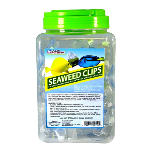 Product Description The Feeding Frenzy Seaweed Clip is an excellent tool for feeding the inSeaweed Selectsin from Ocean Nutrition. The clip is for use underwater and has a suction cup for attachment to the inside surface of glass or acrylic aquariums. This clip has a stronger grip and a longer gripping surface than similar clips that have been used in the aquarium industry. Product Benefits Ingredients Suggestions Use Instructions:1. Clean the seaweed clip thoroughly before each use.2. Tear off a piece of seaweed approximately two inches by three inches, fold once or twice, and place the seaweed in the clip.3. Allow the fish to graze for up to 24 hours. Reattach any large pieces of seaweed that break loose. Remove any uneaten seaweed after 24 hours.4. Seaweed Selects should be used daily as a supplement to other foods from Ocean Nutrition. We strongly recommend Formula Foods, frozen, flake or pellet, or single item frozen foods. Special Note Warnings DisclaimerPeta2z.com offers nationally branded products that are produced according to manufacturing standards set by regulators at everyday low prices. Do not use unproven, unbranded products, which can pose serious risks to your health.