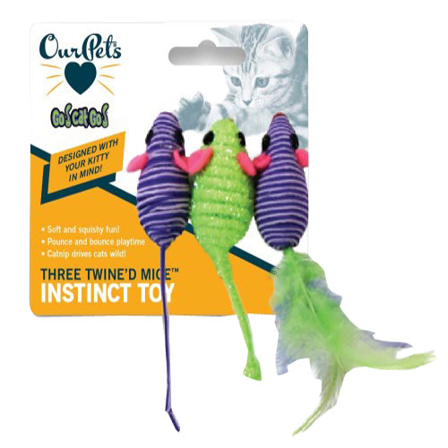 OurPets, OurPets Three Twined Mice Catnip Toy, Green, Purple, 1 Each/3 Pack