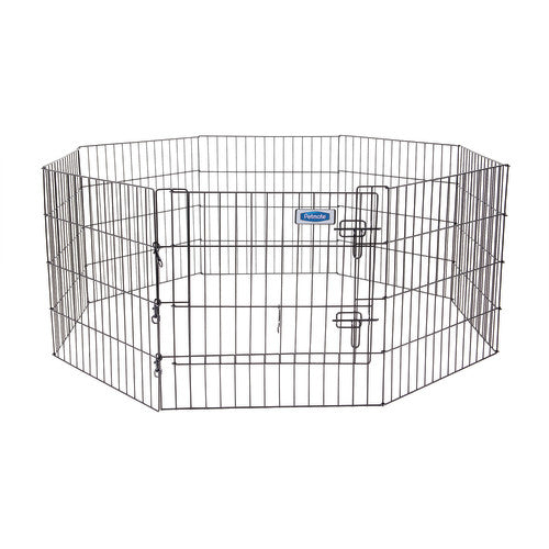 Product Description Petmate's Exercise Pen with Door allows you to create a safe indoor or outdoor exercise area for your pet. The durable wire, solid hinge design is effortless to set up and folds down for portability and easy storage. The snap hook assembly also can be utilized to attach the pen to a wire crate. Pet parents choose from an assortment of heights. Product Benefits Ingredients Suggestions Special Note Warnings DisclaimerPeta2z.com offers nationally branded products that are produced according to manufacturing standards set by regulators at everyday low prices. Do not use unproven, unbranded products, which can pose serious risks to your health.