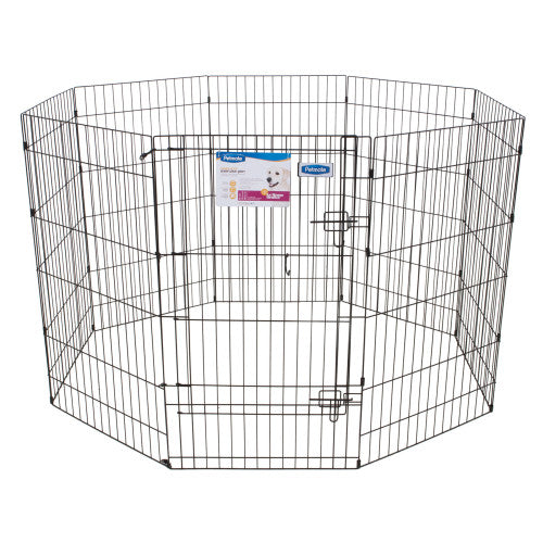 Product Description Petmate's Exercise Pen with Door allows you to create a safe indoor or outdoor exercise area for your pet. The durable wire, solid hinge design is effortless to set up and folds down for portability and easy storage. The snap hook assembly also can be utilized to attach the pen to a wire crate. Pet parents choose from an assortment of heights. Product Benefits Ingredients Suggestions Special Note Warnings DisclaimerPeta2z.com offers nationally branded products that are produced according to manufacturing standards set by regulators at everyday low prices. Do not use unproven, unbranded products, which can pose serious risks to your health.