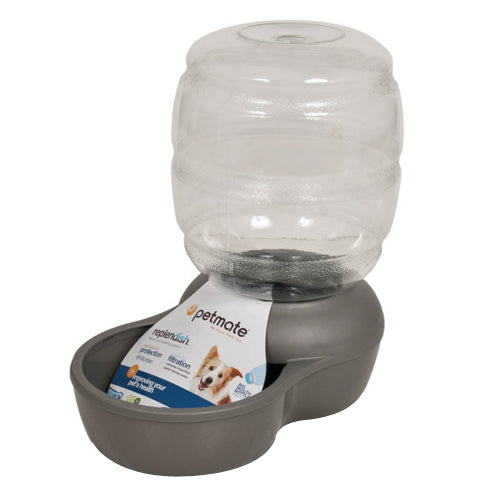 Product Description Petmate Replendish Waterers with Microban provide a continuous flow of filtered water so busy pet parents have fewer refills to make and pets stay hydrated with cool, clean water anytime twenty-four hours a day. Ideal for short stays away from home. The base features Microban Antimicrobial Protection that helps to prevent the growth of stain and odor-causing bacteria. This protection provides an additional level of defense against damaging microbes. Made of PET plastic making it safe for your pets. Easy to clean wide mouth bottle and base. Great for multiple pet households. Includes a charcoal filter that removes waterborne pathogens. Made in the USA. Product Benefits Ingredients Suggestions Special Note Warnings DisclaimerPeta2z.com offers nationally branded products that are produced according to manufacturing standards set by regulators at everyday low prices. Do not use unproven, unbranded products, which can pose serious risks to your health.