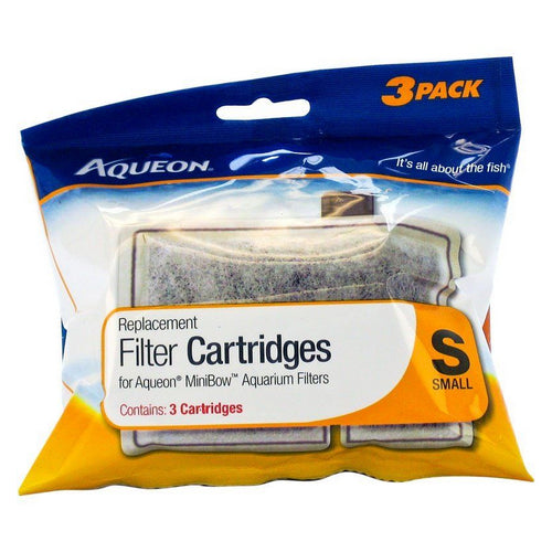 Product Description Aqueon MiniBow Replacement Filter Cartridges are dual-sided replaceable dense-floss cartridges that are designed to provide an even distribution of carbon. These filter cartridges contain over 25% more activated carbon than other leading brands. Replacement filter cartridges Provide even distribution of carbon throughout 25 percent more activated carbon Fits Aqueon MiniBow Aquarium Filters. Product Benefits Ingredients Suggestions Special Note Warnings DisclaimerPeta2z.com offers nationally branded products that are produced according to manufacturing standards set by regulators at everyday low prices. Do not use unproven, unbranded products, which can pose serious risks to your health.