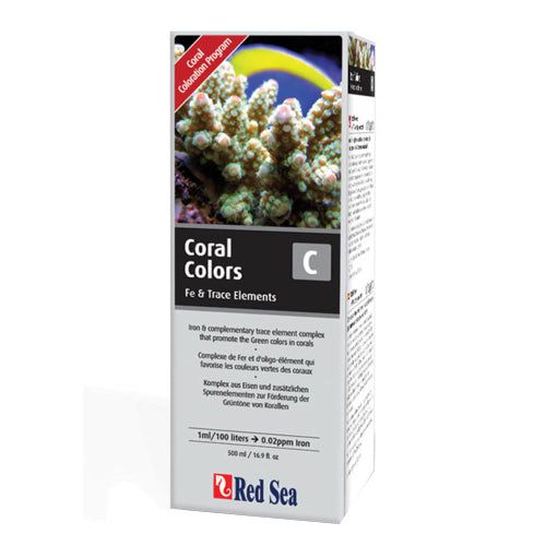 Product Description The Reef Colors program Provides the minor and trace elements that are taken up by the coral skeleton and soft tissue and are essential for SPS corals to display their natural colors. Reef Colors C is an Iron & complementary trace element complex that promote the Green colors in corals. Product Benefits Ingredients Suggestions Use Instructions:1ml will raise the Iron level of 100 liters (25 gal) by 0.01ppm Special Note Warnings DisclaimerPeta2z.com offers nationally branded products that are produced according to manufacturing standards set by regulators at everyday low prices. Do not use unproven, unbranded products, which can pose serious risks to your health.