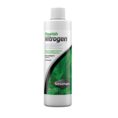 Product Description Nitrogen is one of the main three macro nutrients (nitrogen, phosphorus, potassium: NPK) required by plants and can often become the limiting factor to growth in a flourishing system. Flourish Nitrogen is a concentrated (15,000 mg/L) blend of nitrogen sources. It provides nitrogen in both the nitrate form and the plant-preferred ammonium form. However, no free ammonia is released because the ammonium in Flourish Nitrogen is complexed and unavailable until utilized by the plants. Ammonium becomes available after conversion of urea (carbamide). Flourish Nitrogen also provides nitrate for those plants that can readily utilize nitrate as well. Product Benefits Ingredients Suggestions Use Instructions:Beginner:Use 2.5 ml (half a cap) for each 160 L (40 US gallons) twice a week or as needed in response to signs of nitrogen deficiency (e.g. stunted growth, chlorosis). For smaller doses, please note that each cap thread is approximately 1 mlExpert:The beginner dose raises nitrogen by the same degree that 1 mg/L nitrate would. This dose is sufficient to provide approximately 4 g of growth (dry) or about 20 g (hydrated) over a 1 month period (assuming all other necessary nutrients are provided). For increased growth use proportionately more. To target a specific nitrogen increase, dose according to the following formula: 0.25vn=m, where v= volume of tank in gallons, n=desired nitrogen increase (if using a “nitrate equivalent” value for “n” then use a factor of 0.05 instead of 0.25 in the formula) and m=volume of product to use in ml For example to raise 20 gallons by 0.20 mg/L nitrogen you would use: 0.25*20*0.20=1 ml. Because one-half of the nitrogen in Flourish Nitrogen is from nitrate you can get a reasonable estimate of nitrogen levels by doubling a nitrate reading. Special Note Warnings DisclaimerPeta2z.com offers nationally branded products that are produced according to manufacturing standards set by regulators at everyday low prices. Do not use unproven, unbranded products, which can pose serious risks to your health.