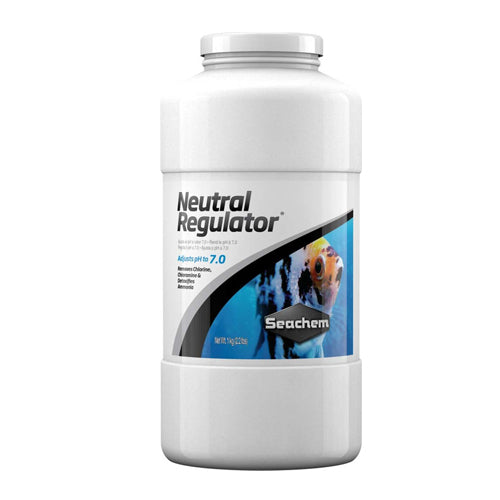 Product Description Neutral Regulator adjusts pH to neutral (pH 7.0) from either a low or high pH and maintains it there. It softens water by precipitating calcium and magnesium while removing any chlorine, chloramine, and detoxifying ammonia. The use of Neutral Regulator makes other conditioning unnecessary. To lower pH below 7.0 use Neutral Regulator with Acid Regulator (or Discus Buffer). To raise pH above 7.0 use with Alkaline Regulator. All of these products will enhance and stabilize the freshwater aquarium environment. For further freshwater environment enhancement, use Fresh Trace to restore the proper level of trace elements and feed NutriDiet Tropical Flakes for thriving, healthy freshwater community fish. Product Benefits Ingredients Suggestions Use Instructions:Use 5 g (1 level teaspoon) for every 40–80 L (10–20 US gallons) once or twice a month (or as necessary to maintain a pH of 7.0.) Neutral Regulator® may be initially used daily in cases of high alkalinity until 7.0 is established. It may be added directly to the aquarium at any time. Ideally, it should be used when adding or changing water by dissolving in the replacement water. For precise dosing, use the Seachem Digital Spoon Scale. Storage Instructions:Store material in original containers. Store in a cool, dry area protected from environmental extremes. Store away from incompatible materials and foodstuff containers. Protect containers against physical damage and check regularly for leaks. Special Note Warnings DisclaimerPeta2z.com offers nationally branded products that are produced according to manufacturing standards set by regulators at everyday low prices. Do not use unproven, unbranded products, which can pose serious risks to your health.