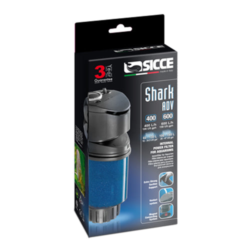 Product Description The SHARK ADV is an exclusively designed internal filter with a patented magnetic quick uncoupling system (MCS System). The modular design allows the possibility of adding one or more filtering compartments to increase the filtration capacity. Product Benefits Ingredients Suggestions Use Instructions:Decide where you want to position the filter, accurately clean the glass of the tank at the point where the suckers will be positioned, rest the support on the glass and press firmly. Then insert the filter, in such a way that the flow is going in the right direction (Pic.1). Lastly, insert the plug in the socket. Special Note Warnings DisclaimerPeta2z.com offers nationally branded products that are produced according to manufacturing standards set by regulators at everyday low prices. Do not use unproven, unbranded products, which can pose serious risks to your health.