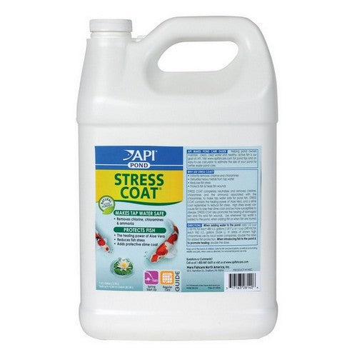 Product Description API POND STRESS COAT Pond Water Conditioner works instantly to remove chlorine, chloramines and ammonia from tap water and neutralize heavy metals. With the healing power of aloe vera, API POND STRESS COAT is also scientifically proven to reduce fish stress by 40%, which helps reduce susceptibility to disease and infection. STRESS COAT forms a synthetic slime coating and replaces the natural secretion of slime that is interrupted by handling, shipping, fish fighting and other forms of stress, as well as helping to prevent electrolyte loss. This formula is scientifically proven to heal wounds, including torn fins and skin wounds, and promote regeneration of damaged fish tissue. API POND STRESS COAT Water Conditioner comes recommended by professional fish handlers. Use this pond dechlorinator solution when adding or changing freshwater pond water, when you add new fish to your pond, and when your fish are damaged by injury or disease. With API POND products, it’s easy to keep a beautiful pond. For almost 60 years API has developed premium solutions with proven and effective results for your family and ours. API offers a range of testing kits, water conditioners, and nutritionally superior food, because we’re dedicated to making a better underwater world. They work to provide a safe, hospitable environment for fish such as koi, catfish, perch, goldfish and more. At API, we understand the rewards and relaxation of fishkeeping because we have a passion for fish too. Product Benefits Protects fish and removes harmful-to-fish chemicals from tap water to make water safe Contains Aloe Vera to replace fish's protective coat damaged by handling, shipping or fighting Safe for freshwater ponds, fish and pond plants, as well as surrounding wildlife and pets Ingredients Suggestions Use when adding or changing water, when adding new fish, and when fish are damaged by injury or disease Special Note Warnings DisclaimerPeta2z.com offers nationally branded products that are produced according to manufacturing standards set by regulators at everyday low prices. Do not use unproven, unbranded products, which can pose serious risks to your health.