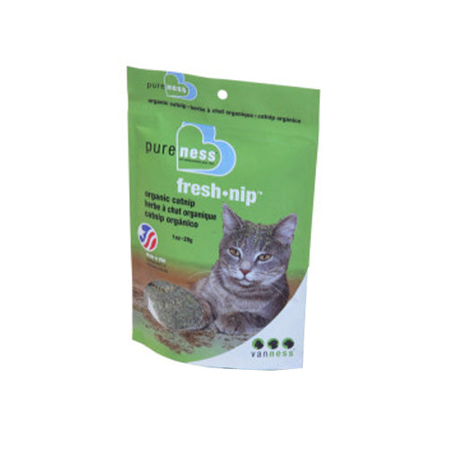 Product Description Van Ness Fresh Nip Totally Natural Catnip is grown in the USA to the strict standards of Quality Assurance International. Free from all chemical pesticides, it is 100% safe for your cat. Van Ness Fresh Nip catnip can be used to refresh your cat's scratching pads, refill toys or sprinkle on your cat's bed or the ground so they can roll around in it! Using all natural cat nip promotes a healthy lifestyle by motivating your cat to exercise. Say good-bye to the lazy kitty!. The fresh and potent aroma drives cats wild and also helps alleviate stress.. Made with 100% certified organic cat nip. No fillers, No chemicals, just pure cat nip. Grown in the USA. Product Benefits Ingredients Suggestions Special Note Warnings DisclaimerPeta2z.com offers nationally branded products that are produced according to manufacturing standards set by regulators at everyday low prices. Do not use unproven, unbranded products, which can pose serious risks to your health.